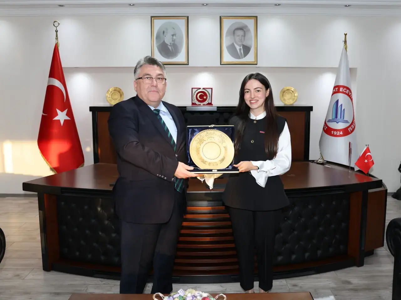Farabi Kampüsü Rektörlük makamında gerçekleşen ziyarette; BEUN Rektörü Prof. Dr. İsmail Hakkı Özölçer, BEUN Genel Sekreteri ve Eczacılık Fakültesi Dekanı Prof. Dr. Zehra Safi Öz ile ödül sahibi Dr. Öğr. Üyesi Burcu Timur yer aldı.