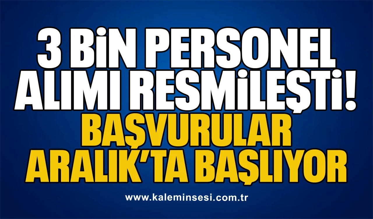 3000 personel alımı başvuru tarihleri, şartları, alım yapılacak pozisyonlar ve gerekli belgeler gibi detaylar belli oldu. Başvurular, 15-26 Aralık 2025 tarihleri arasında alınacak.