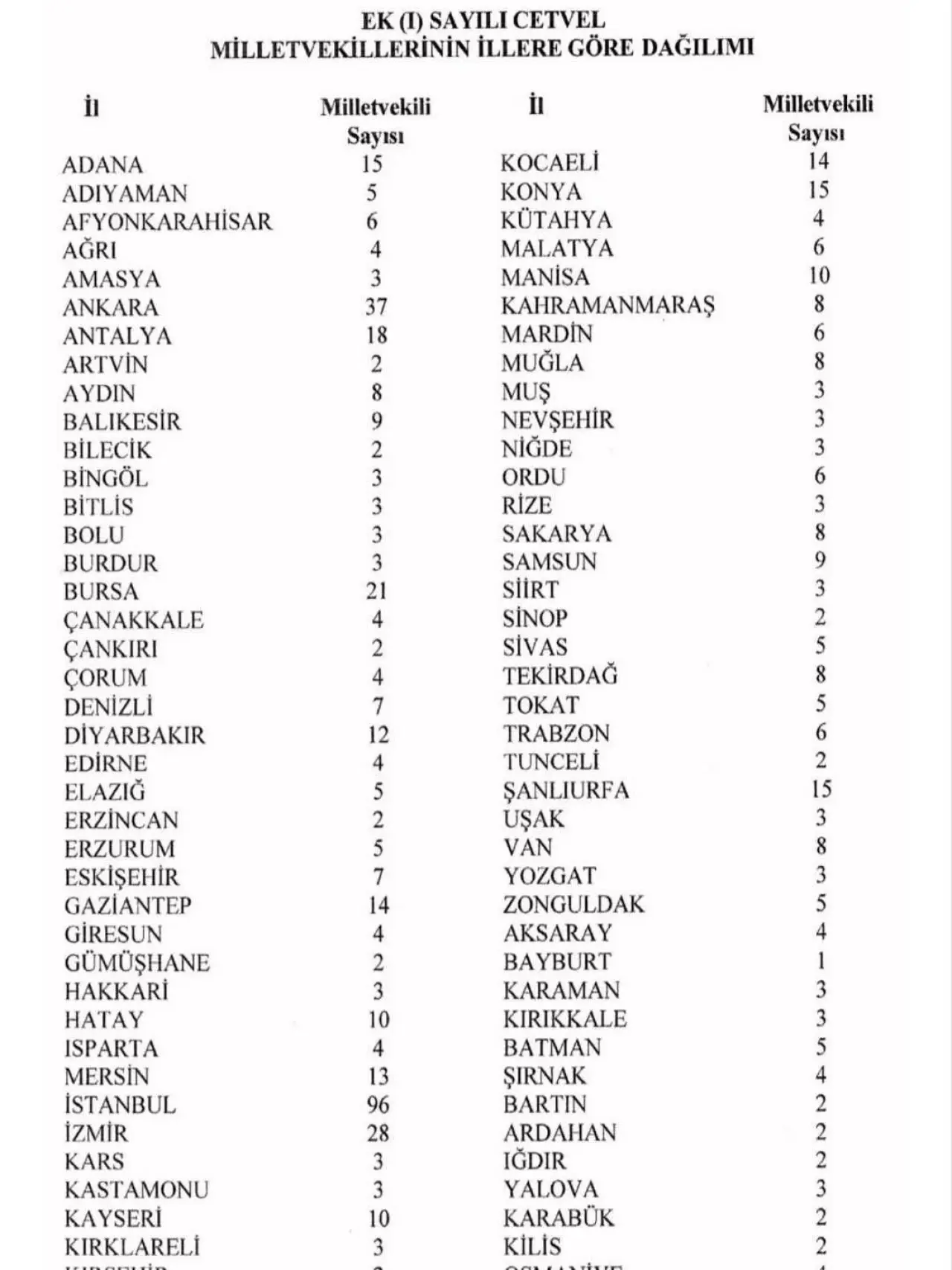 YSK İllere Göre Milletvekili Dağılımını Güncelledi