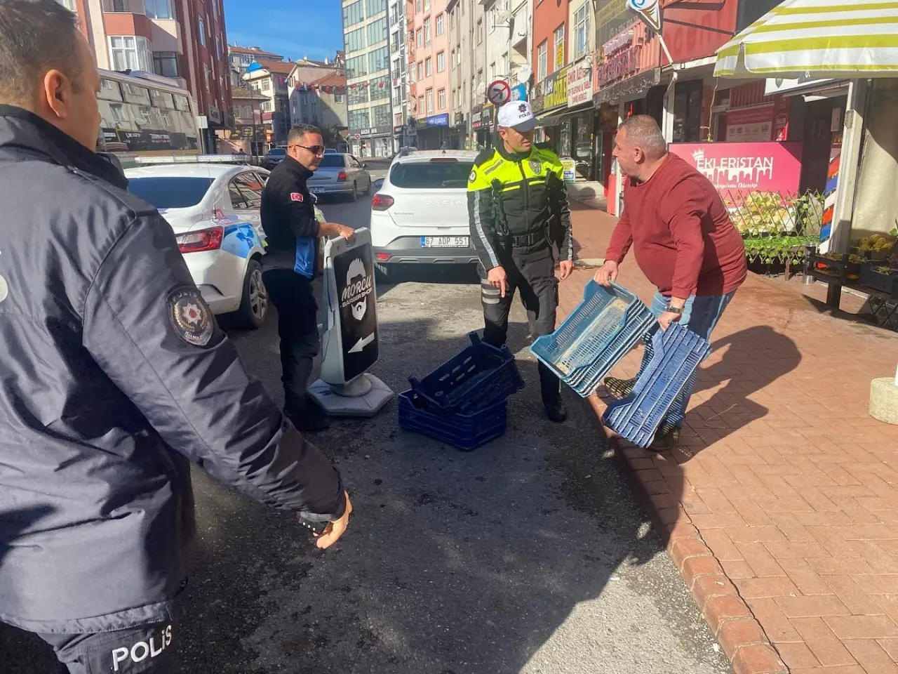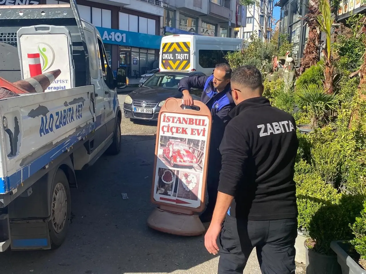 İlçe emniyet müdürlüğüne bağlı polis ekiplerinin de destek verdiği operasyonda kaldırımlara konan plastik duba, reklam flama ve tabela, lastik ve benzeri işgal malzemeleri tek tek toplandı.