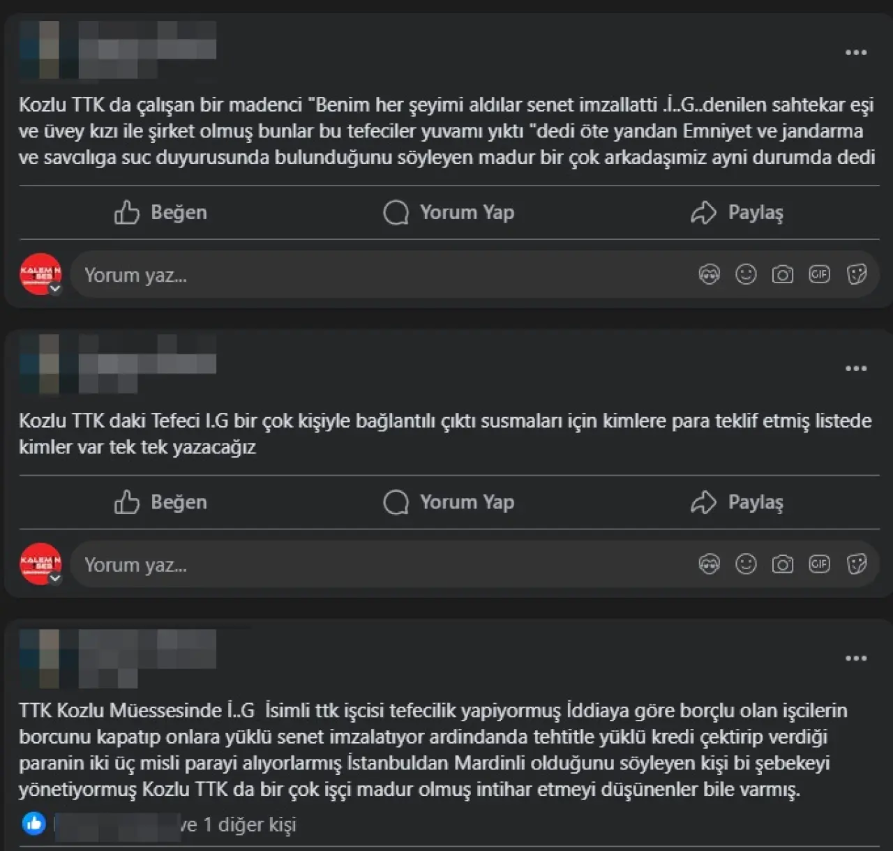 Paylaşımlarda ayrıca, bazı mağdur işçilerin Emniyet, jandarma ve savcılığa suç duyurusunda bulunduğu, yaşanan baskılar nedeniyle psikolojik olarak yıpranan ve intiharı düşünen kişilerin dahi olduğu ileri sürüldü.
