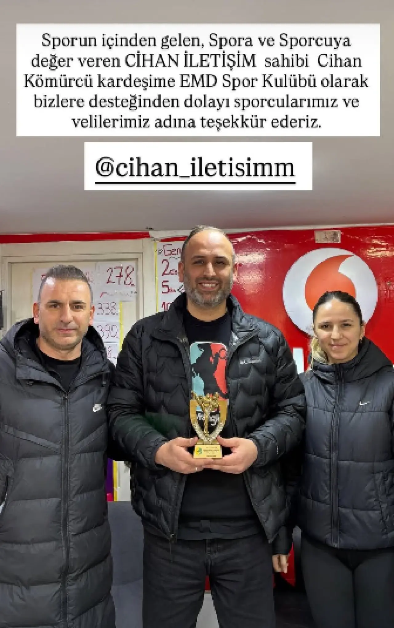 Kulüp yönetimi tarafından düzenlenen törende, sporun gelişimine sağladığı katkılar ve gençlere verdiği destek nedeniyle Kömürcü’ye teşekkür edildi. EMD Spor Kulübü yetkilileri Emrah Demir ve Yağmur Karakayış sporun sadece saha içinde değil toplumun her alanında desteklenmesi gerektiğini belirterek, Cihan Kömürcü’nün bu anlamda örnek bir duruş sergilediğini ifade etti.