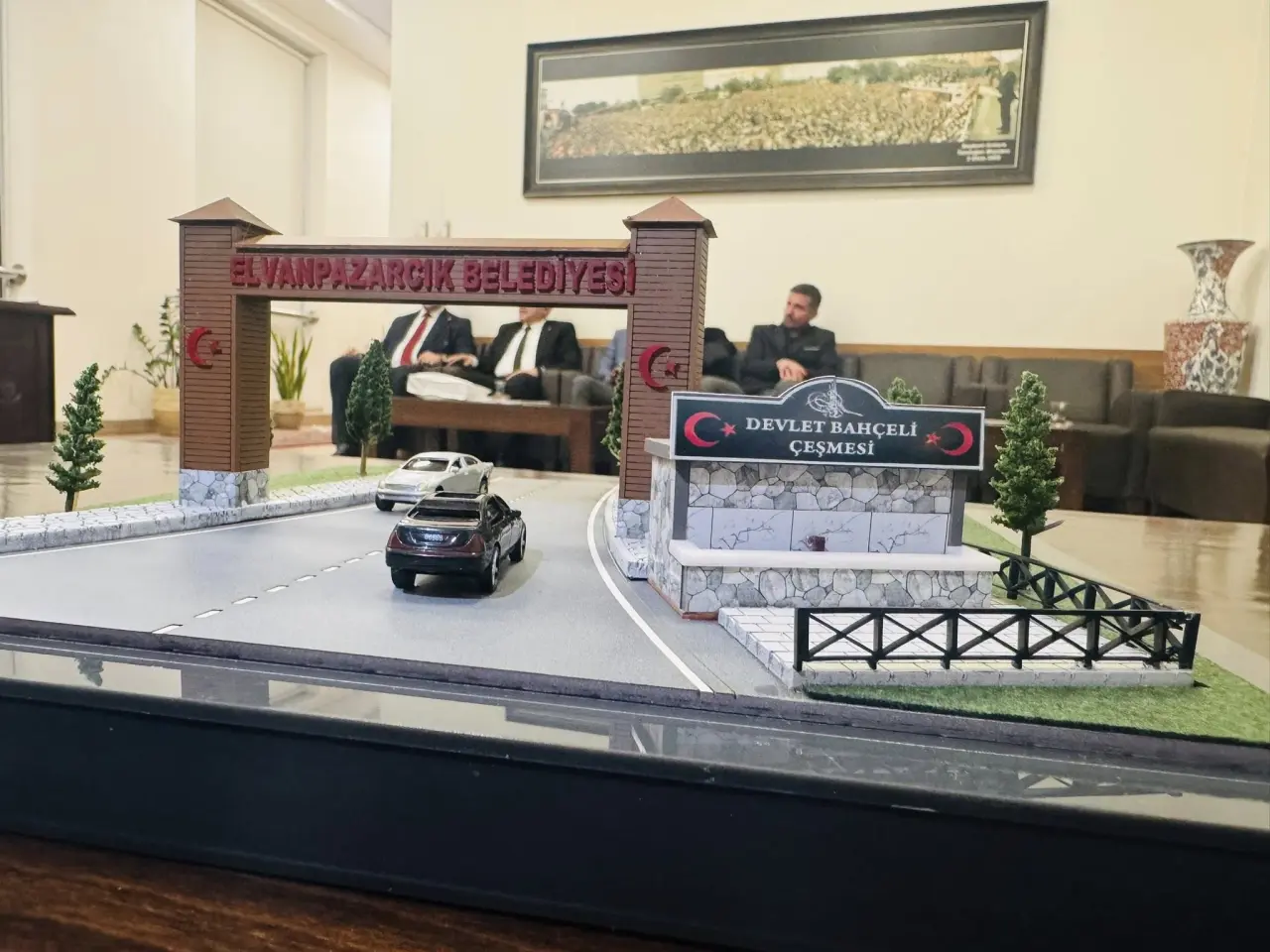 Ziyarette, Genel Başkan Devlet Bahçeli’nin her ilde bir hayrat çeşmesi yapılması yönündeki talimatları doğrultusunda, Zonguldak’ın Elvanpazarcık Beldesi’nde inşa edilen hayrat çeşmesinin maketi, Belediye Başkanı Ümit Uzun tarafından Bahçeli’ye takdim edildi.