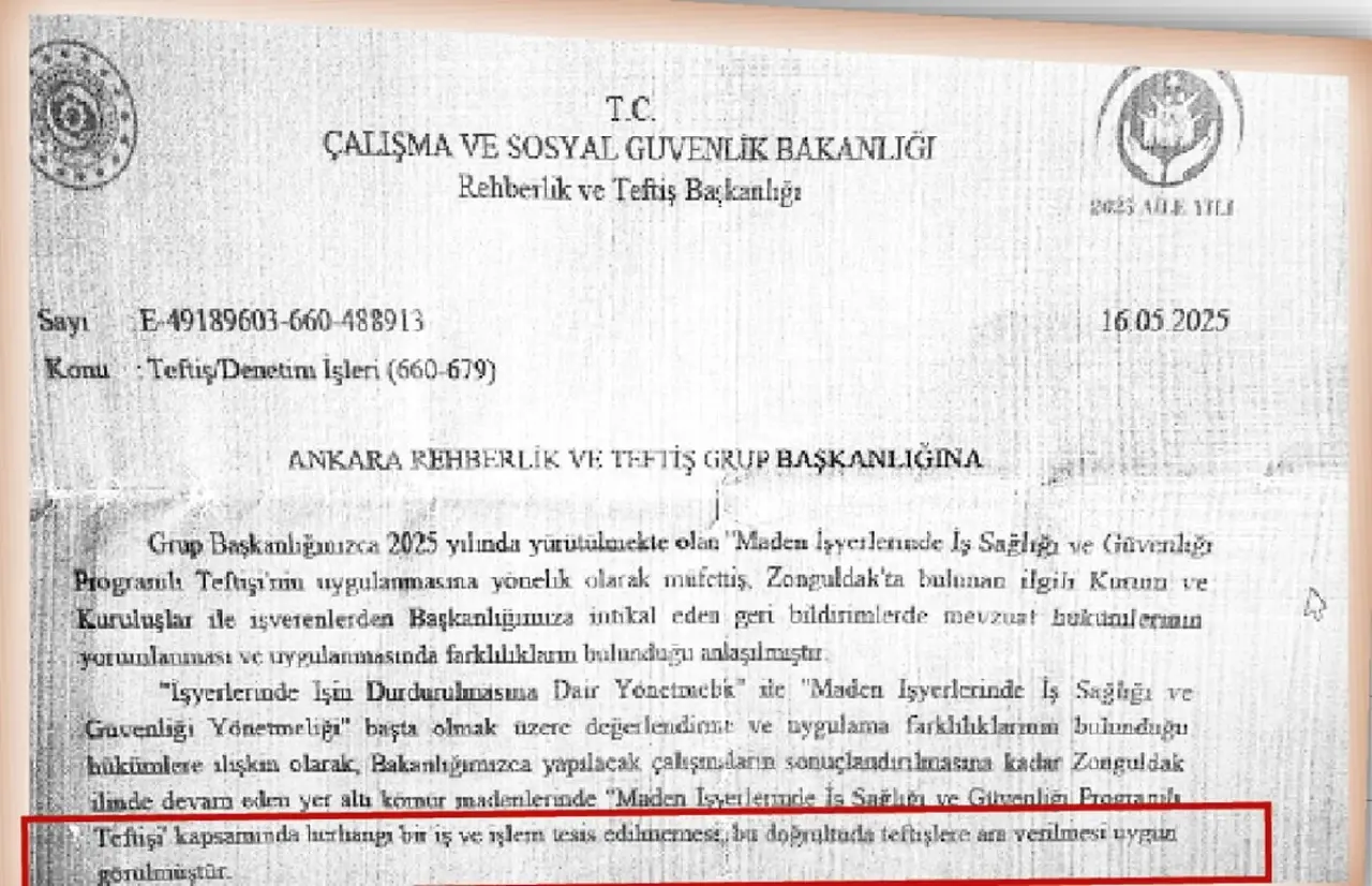 Türkiye Taşkömürü Kurumunun (TTK) Zonguldak’taki Karadon, Üzülmez ve Amasra müesseselerine bağlı kömür ocaklarında, 16 Mayıs 2025’te iş güvenliği denetimlerinin durdurulduğu ve bu tarihten bu yana denetim yapılmadığı ortaya çıktı. Müfettişlerin, üç kömür ocağı için ayrı ayrı jeneratör temin edilmeden ocaklara inilmemesi gerektiğini raporladığı, ocakların derhal kapatılarak sorunun giderilmesini istediği öğrenildi.