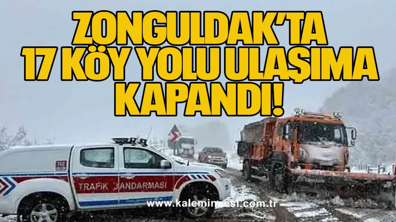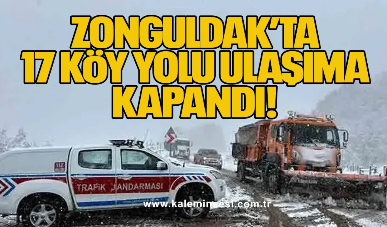 Zonguldak'ta kar yağışı nedeniyle 17 köy yolu kapandı. İl Özel İdaresi ekipleri yolları açmak için çalışmalarını sürdürüyor. Önceden kapalı olan 81 köy yolu çalışmalarıyla açıldı. Merkez, Kozlu, Devrek ve Ereğli ilçelerinde yollar kapandı.